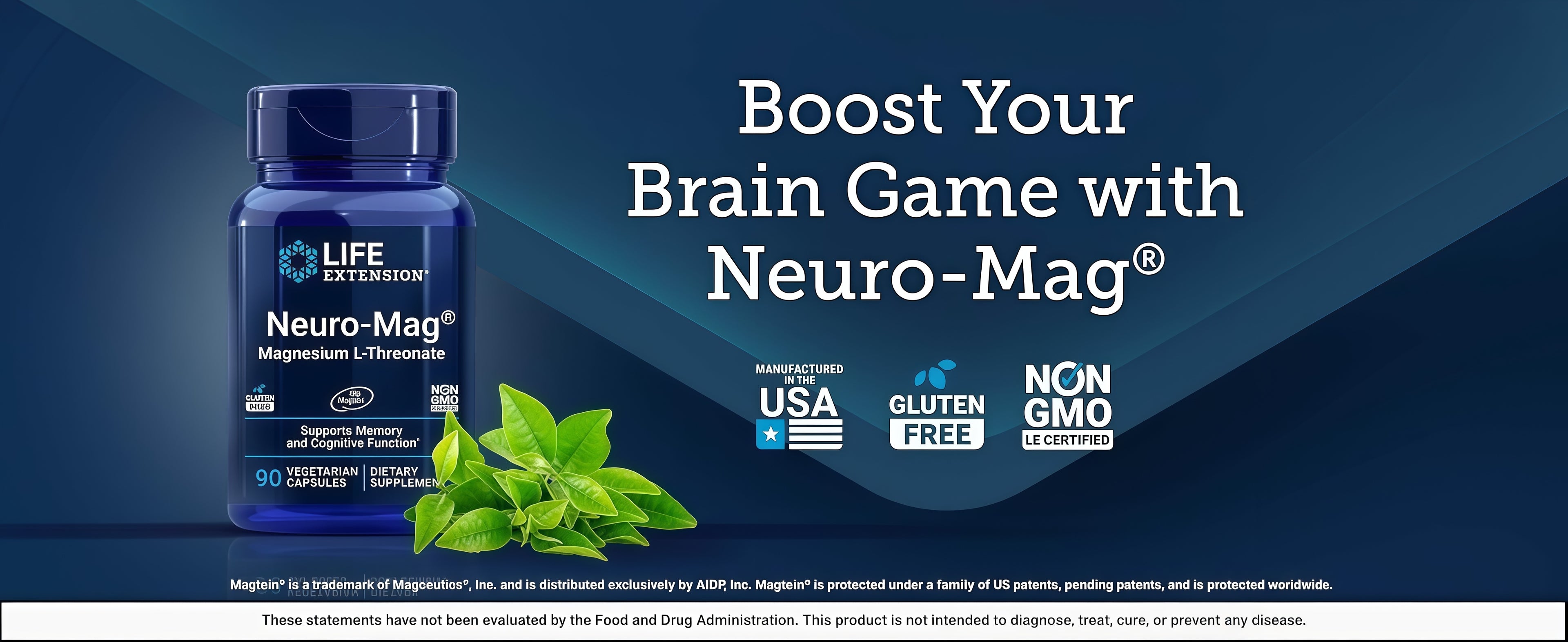 Life Extension® Neuro-Mag® Magnesium L-Threonate is a premium magnesium formula designed to support brain health, cognitive performance and memory. Using a highly absorbable form of magnesium (Magnesium L-Threonate), Neuro-Mag delivers efficient magnesium uptake into the brain—where it matters most.
